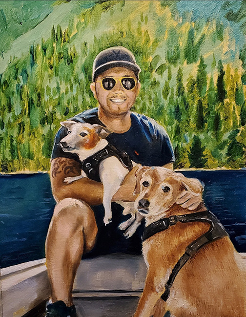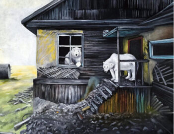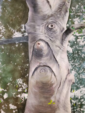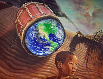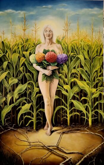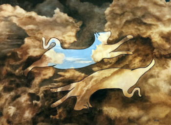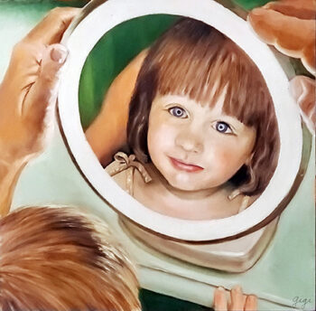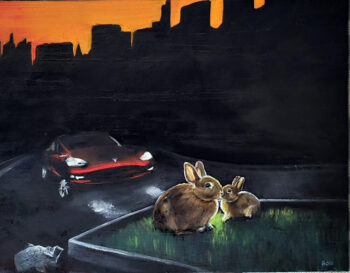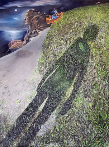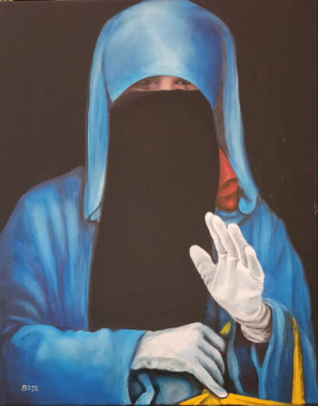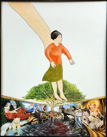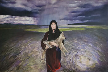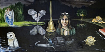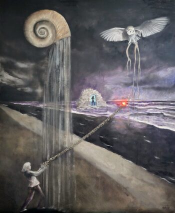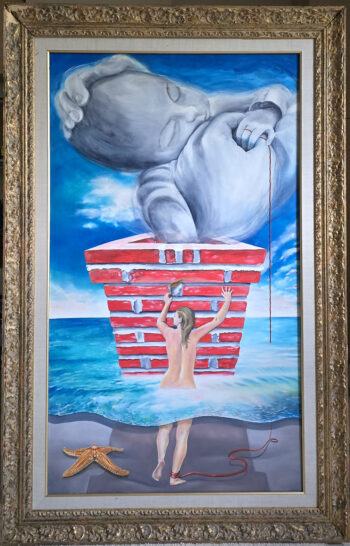 Oil on Canvas With Chain, Selenium Crystal, Led Light